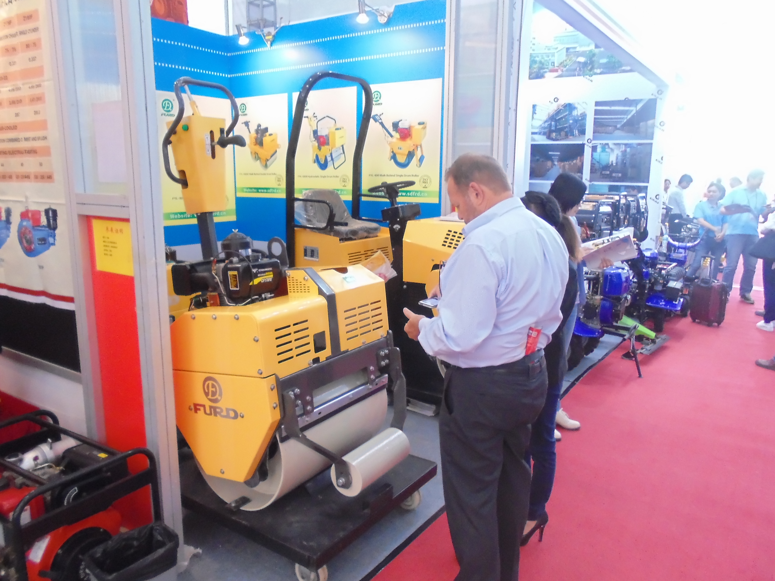此次福瑞得準(zhǔn)備充分,5天內(nèi)接待眾多外商,現(xiàn)場(chǎng)異?;鸨槐姸嗫蜕唐毡閷?duì)我公司FYL-880壓路機(jī)表現(xiàn)出濃厚的興趣。