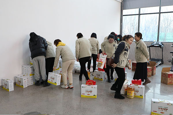讓大家看到了未來的工作環(huán)境,不僅提高了廣大員工的工作積極性,而且讓全體員工對集團未來的發(fā)展有了更多信心,也進一步堅定了員工扎根“福瑞得”的決心。各部門依次有序到現(xiàn)場領取春節(jié)福利。當大家從領導手中接過一箱箱沉甸甸的福利物品時,內心深深地感受到了公司領導對每一位員工的關愛之情。一箱箱福利代表著集團向每一位員工及員工家人送去的真摯問候與祝福,公司上下洋溢在一片溫馨和諧的喜慶氣氛中。