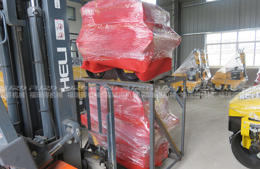 福瑞得16臺手扶雙鋼輪壓路機打包裝車發(fā)往湖北