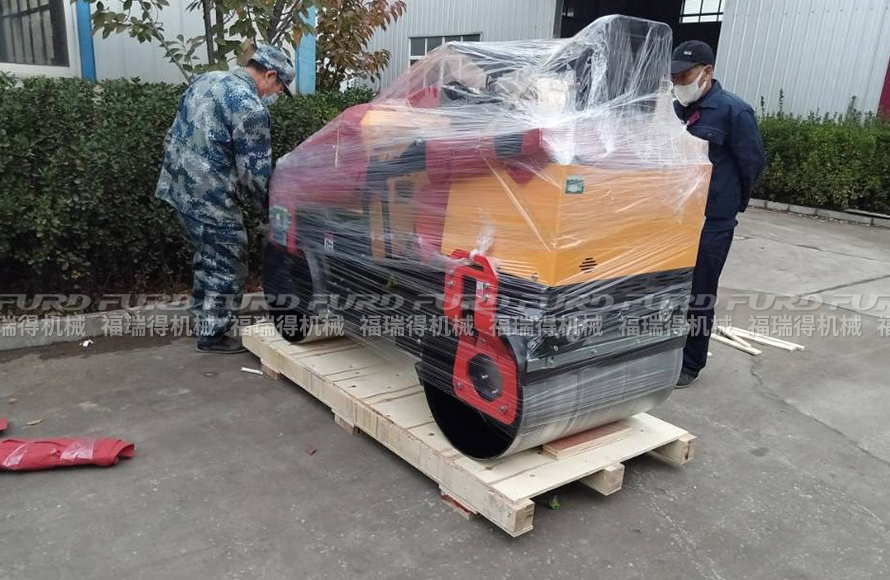 福瑞得1臺(tái)雙鋼輪壓路機(jī)打包發(fā)往菏澤
