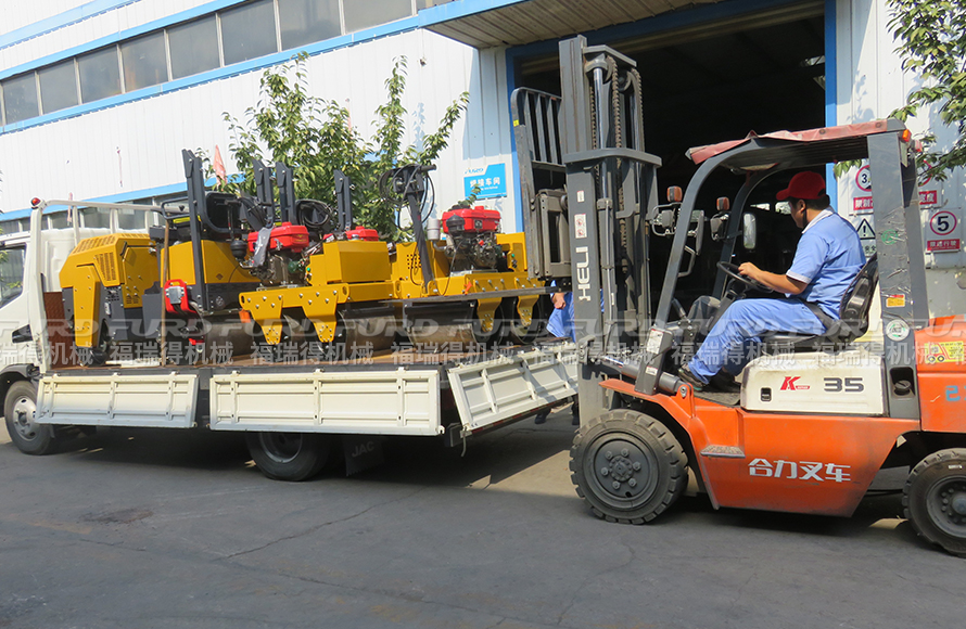 福瑞得機械4臺小型壓路機裝車發(fā)往河南。