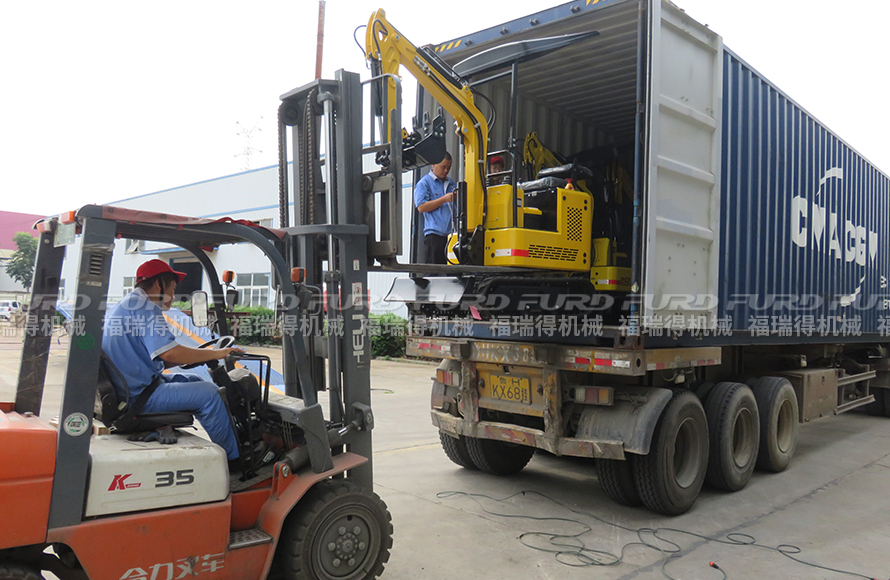 福瑞得機(jī)械一批小型挖掘機(jī)裝柜出口尼日利亞
