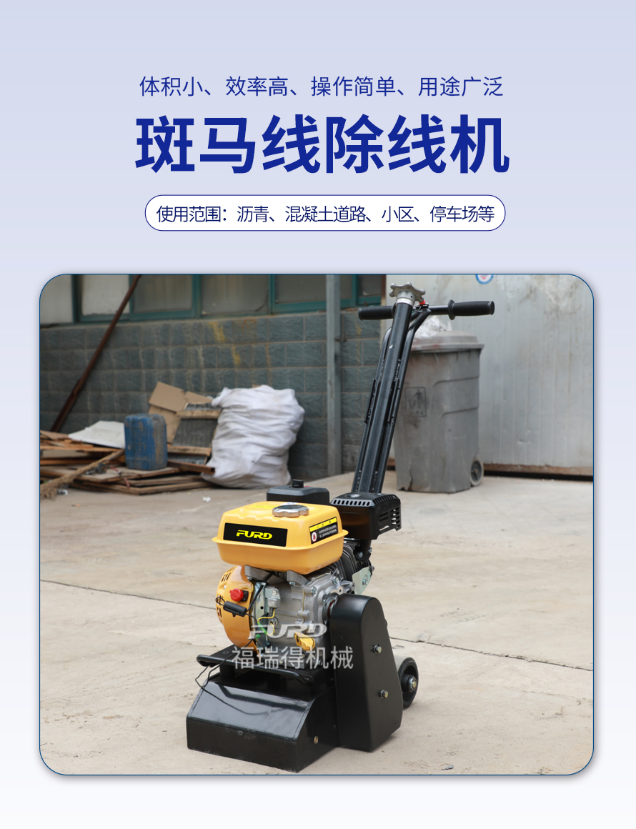 特點(diǎn):體積小、重量輕、機(jī)動(dòng)靈活、工作效率高、操作簡單。 適應(yīng)范圍:主要用于瀝青道路、混凝土道路、物業(yè)小區(qū)、機(jī)場(chǎng)、停車場(chǎng)等地的標(biāo)線清除。
