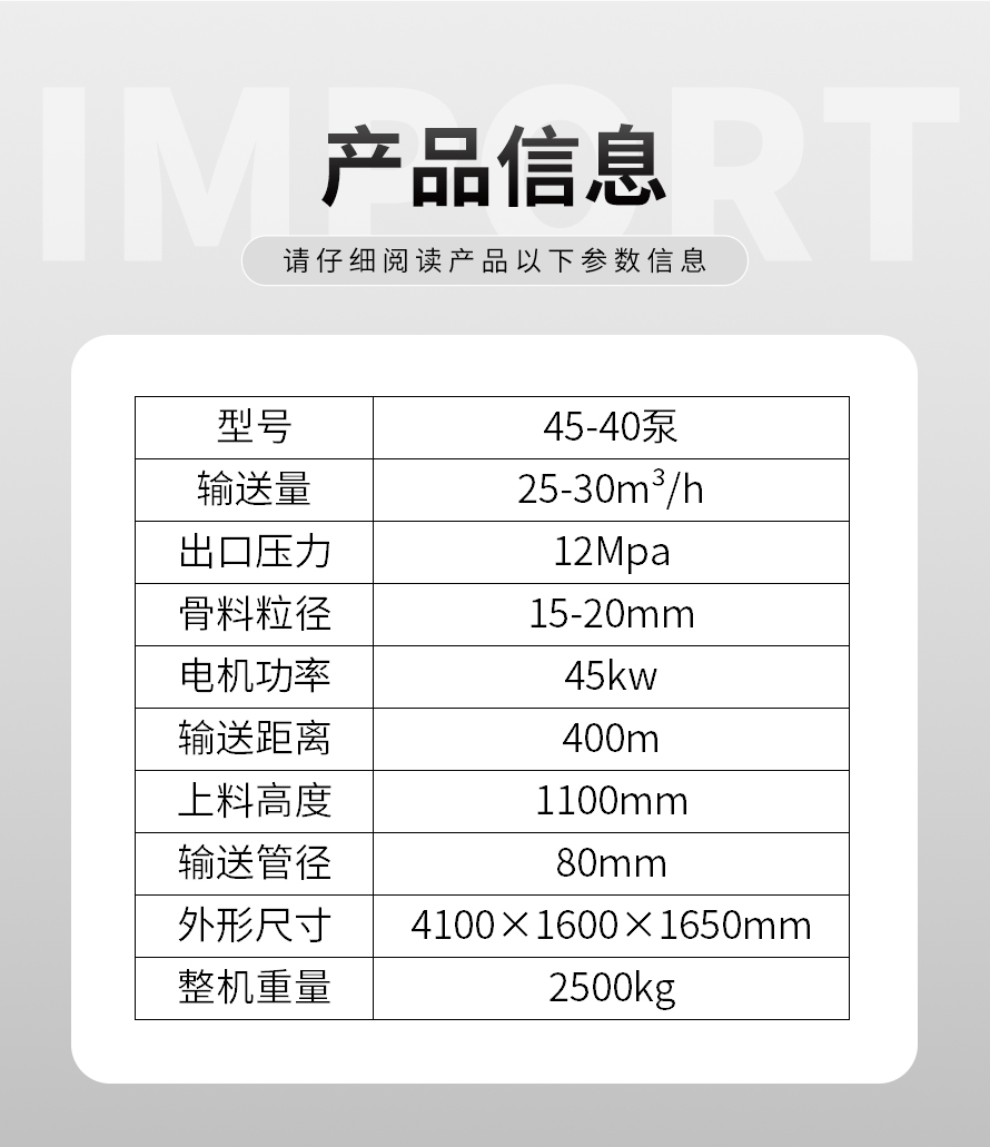 產(chǎn)品介紹: 1,大流量 采用加粗料缸,讓機械每一次循環(huán)出料多20% 2,效率高 移動便捷全部采用快接式管道卡,提高工作效率 3,便捷 本機可遠程遙控,操作不受地點限制,更加人性化 產(chǎn)品用途: 坡道灌漿,水平地面,隧道澆筑,模