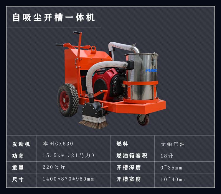 混凝土路面開槽吸塵一體機集開槽、吸塵為一體,解決了傳統(tǒng)開槽機工作產(chǎn)生灰塵的問題