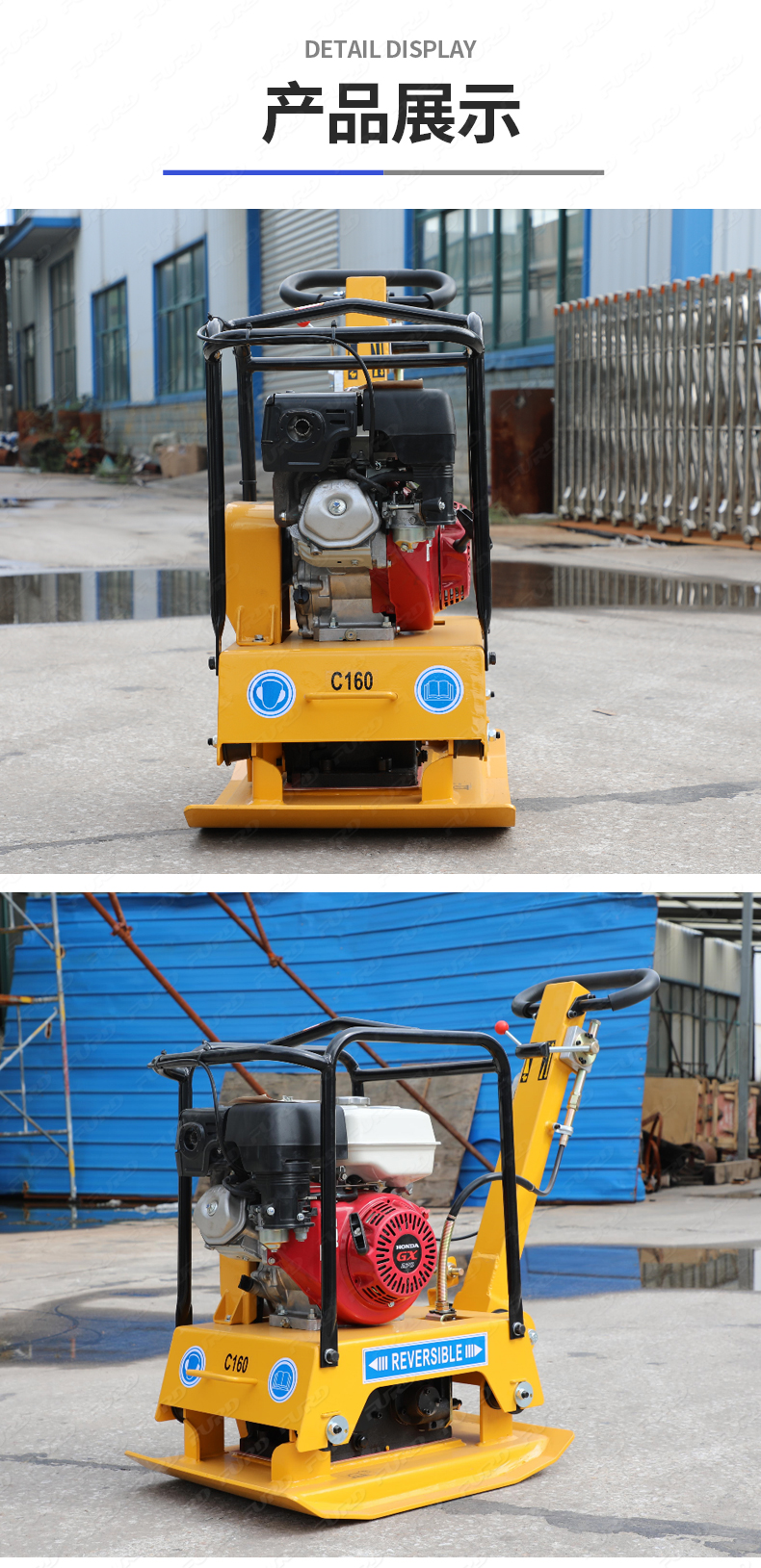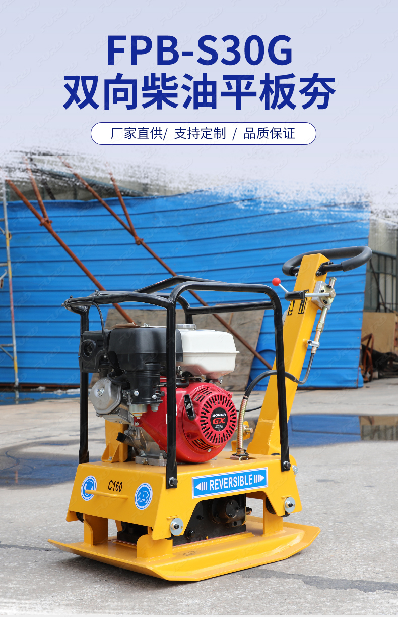 適用于路基邊緣、橋涵、管道、溝槽底部等狹長地帶的壓實(shí)。 本田汽油動(dòng)力,名牌品質(zhì)保證。