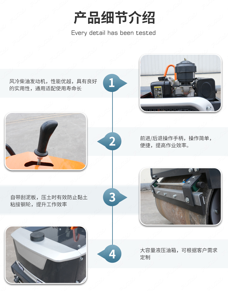 FYLJ-S600P壓路機(jī)是一種小型振動(dòng)壓路機(jī),適用于修補(bǔ)和養(yǎng)護(hù)各種道路,高速公路路肩,路邊步行,停車區(qū),運(yùn)動(dòng)場(chǎng)和花園草坪,特別適用于狹窄區(qū)域的壓實(shí),如管道通道和排水溝等